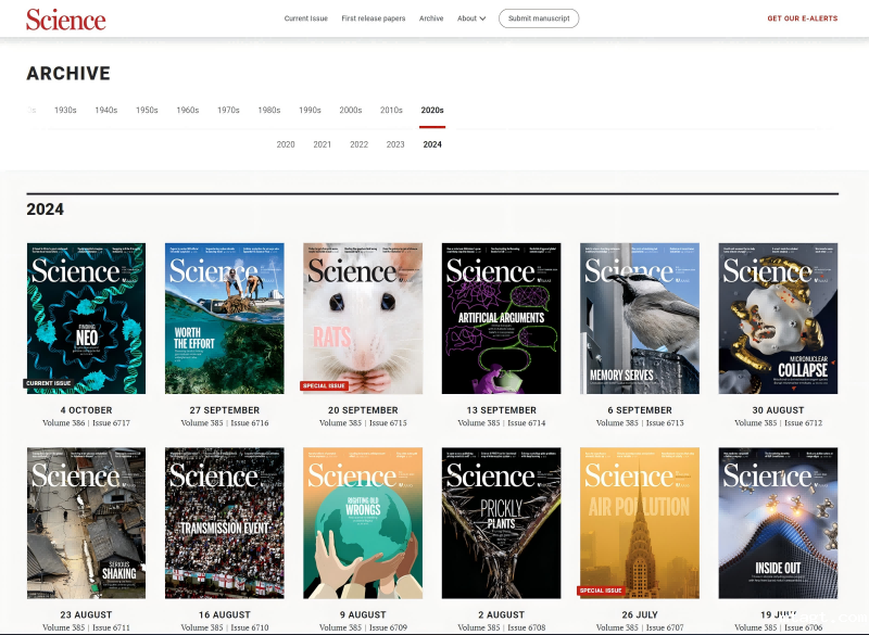 《科学》周刊是Science Online平台最主要的部分,创刊于1880年,是在国际学术界享有盛誉的综合性科学周刊。其关注点为原创性科学研究和科研综述,也出版科学相关的重大新闻、科技政策等,刊载文章涉及涵盖各个学科领域。
