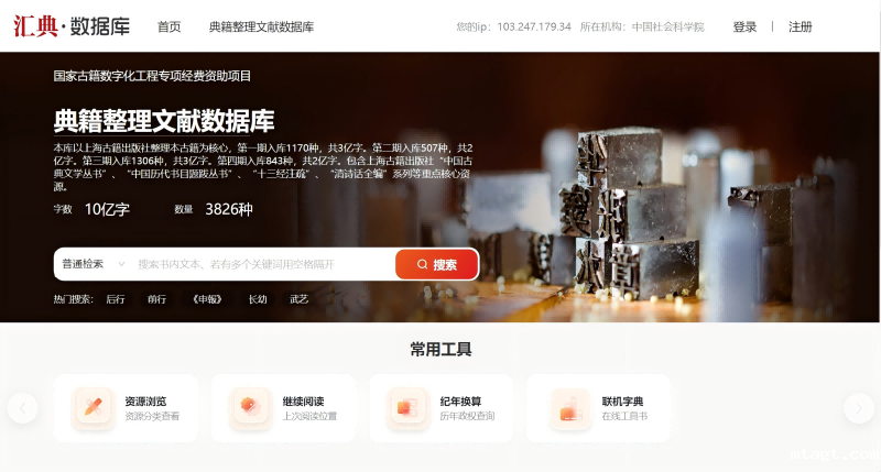 本库以上海古籍出版社整理本古籍为核心,第一期入库1170种,共3亿字。第二期入库507种,共2亿字。第三期入库1306种,共3亿字。第四期入库843种,共2亿字。包含上海古籍出版社“中国古典文学丛书”、“中国历代书目题跋丛书”、“十三经注疏”、“清诗话全编”系列等重点核心资源。