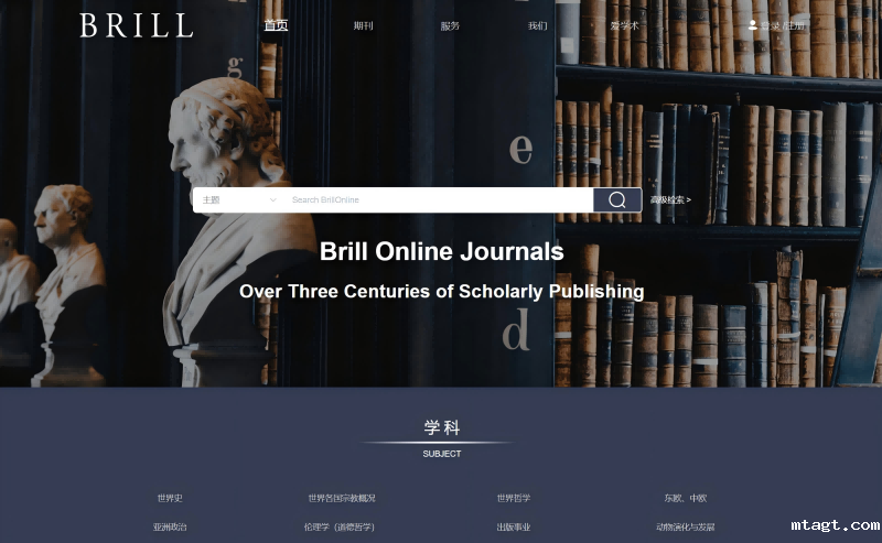 Brill电子期刊全文数据库包含近300种期刊,涵盖国际法、哲学、语言学与文学、中东与伊斯兰研究、宗教研究、亚洲研究、古典研究、区域研究、教育学等领域的内容。