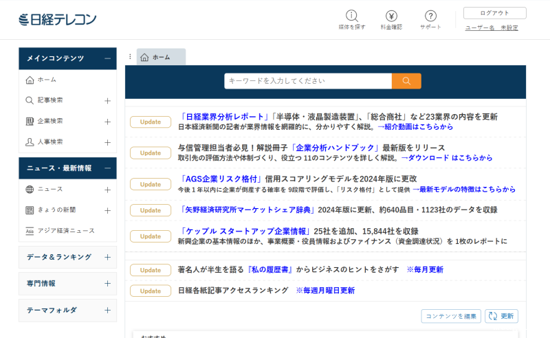 (2)新闻报章:日经各大报章,除了《日本经济新闻》之外,还包括:日本经济新闻早晚报、日经产业新闻、日经流通新闻、日经PLUS ONE、日经MAGAZINE等。内容每日更新,提供1975年创刊至今40年来的内容。甚至海外较难浏览到的“日本地方经济版面”也收录其中。文档格式为PDF格式或文本格式。