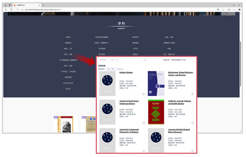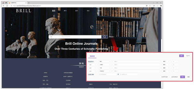 (1)院图书馆/数字图书馆网站——数据库导航——检索“BRILL”。