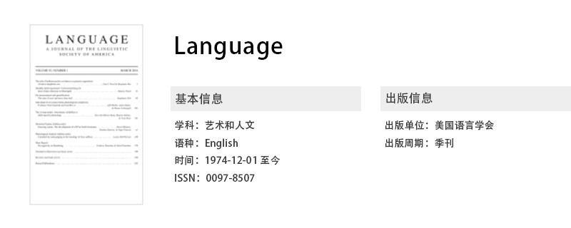 《Language》创刊于1925年,由美国语言学学会(LSA)出版,是语言学领域的顶级期刊之一,主要发表高质量的理论和实证研究。