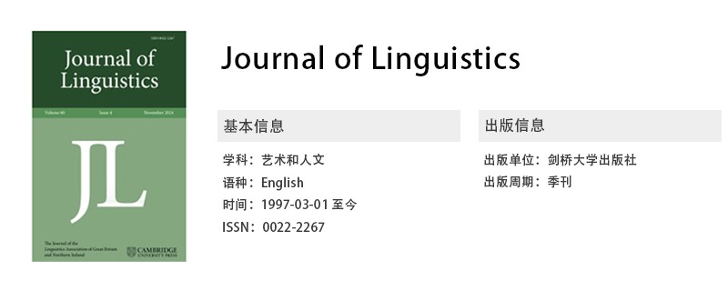 《Journal of Linguistics》创刊于1965年,由剑桥大学出版社出版,涵盖语言学的各个领域,包括语音学、音系学、句法学、语义学等。