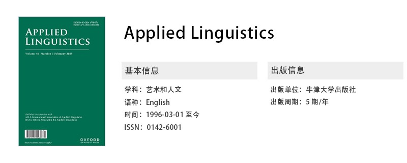 《Applied Linguistics》创刊于1980年,由牛津大学出版社出版,专注于语言学的应用研究,包括语言教学、语言政策、第二语言习得等。