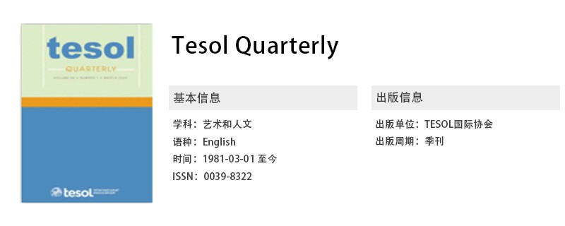 《TESOL Quarterly》创刊于1967年,由TESOL国际协会出版,主要关注英语作为第二语言的教学和研究。