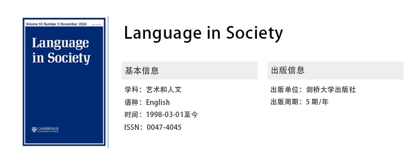 《Language in Society》创刊于1972年,由剑桥大学出版社出版,关注语言与社会的关系,包括语言变异、语言政策、语言与身份等。