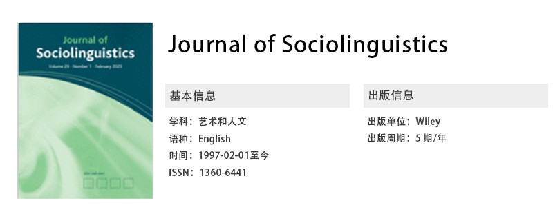 《Journal of Sociolinguistics》创刊于1997年,由Wiley出版,涵盖社会语言学的各个领域,包括语言接触、语言变化、语言态度等。