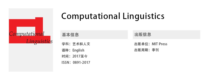 Computational Linguistics是计算语言学领域的顶级学术期刊,涵盖自然语言处理(NLP)的各个方面,包括理论、算法和应用。主要研究领域包括:自然语言处理、语言模型、语料库语言学、语音识别与合成、信息检索与文本挖掘、跨语言与多语言处理等。该期刊旨在推动语言计算模型的研究,促进语言学与计算机科学的交叉融合。