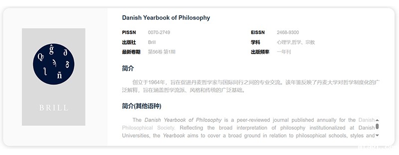 (三)《丹麦哲学年鉴》(Danish Yearbook of Philosophy)