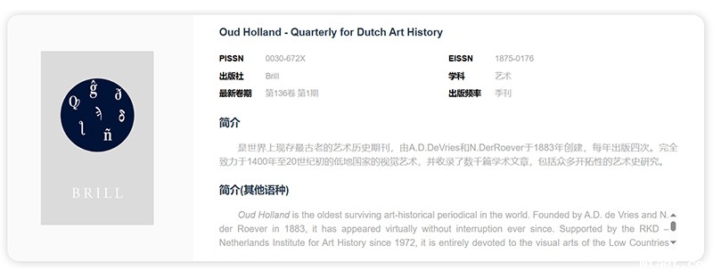 (六)《荷兰艺术史季刊》(Oud Holland - Quarterly for Dutch Art History)