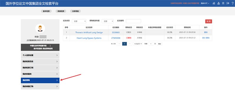 3.论文荐购:论文挑选,点击荐购,为可荐购论文;