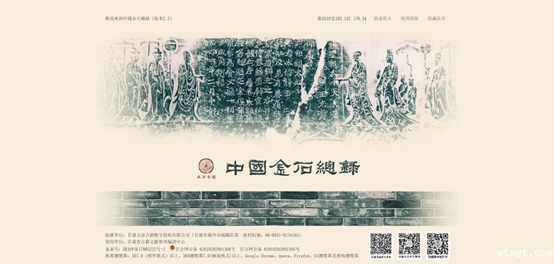 中国金石总录数据库由甘肃省古籍文献整理编译中心出品,是该编译中心会同全国数十家教学、科研、典藏和企事业单位,以及百余位著名学者、学科带头人经过多年共同完成的学术成果。